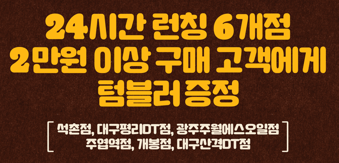 석촌점, 대구평리DT점, 광주주월에스오일점, 주엽역점, 개봉점, 대구산격DT점에서 밤 11시부터 새벽6시까지 매장구매 고객한정으로 텀블러를 증정한다네요.