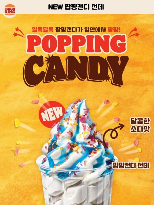 무더운 여름을 견디는 슬기로운 방법. 버거킹 행사로 할인 가격에 먹을 수 있는 선데 아이스크림입니다. 새로 추가된 팝핑캔디 소다 선데까지도 먹을 수 있습니다.